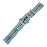 Bei aller Liebe für Durchzugsbänder. Manchmal passt ein zweiteiliges Armband aus dem Material von Nato Straps einfach besser.Wenn kein Band unter dem Gehäuseboden durchläuft baut die Uhr nicht so hoch auf. Das ist gerade bei Uhren mit geringer Bauhöhe ein Vorteil.